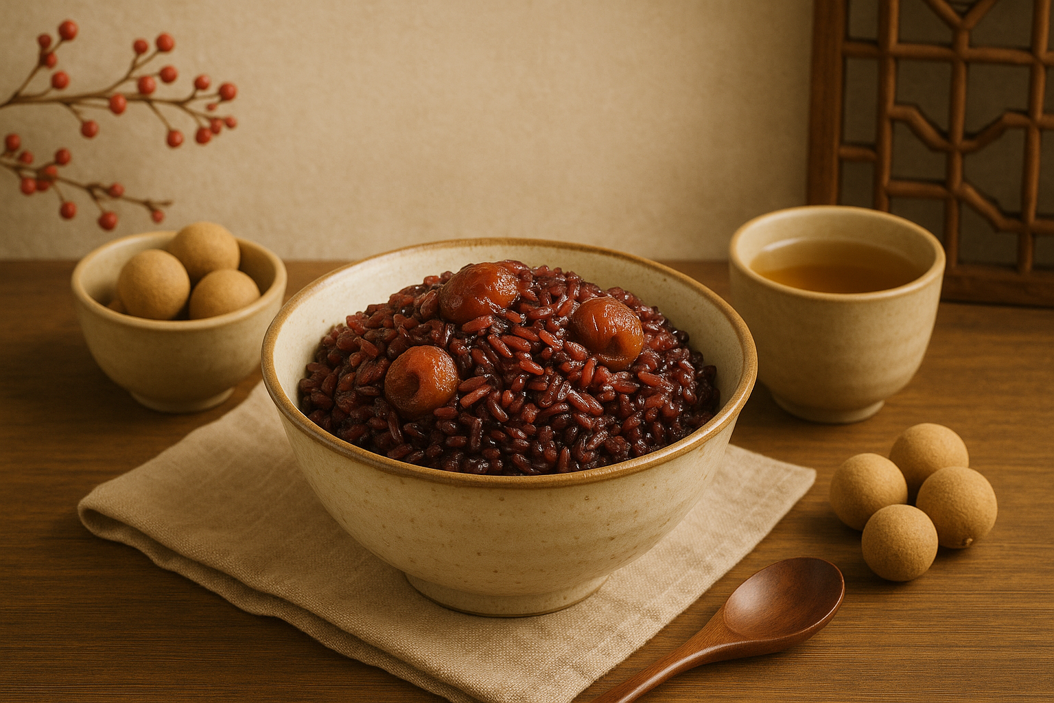 A nostalgic blend of purple sticky rice and dried longan,