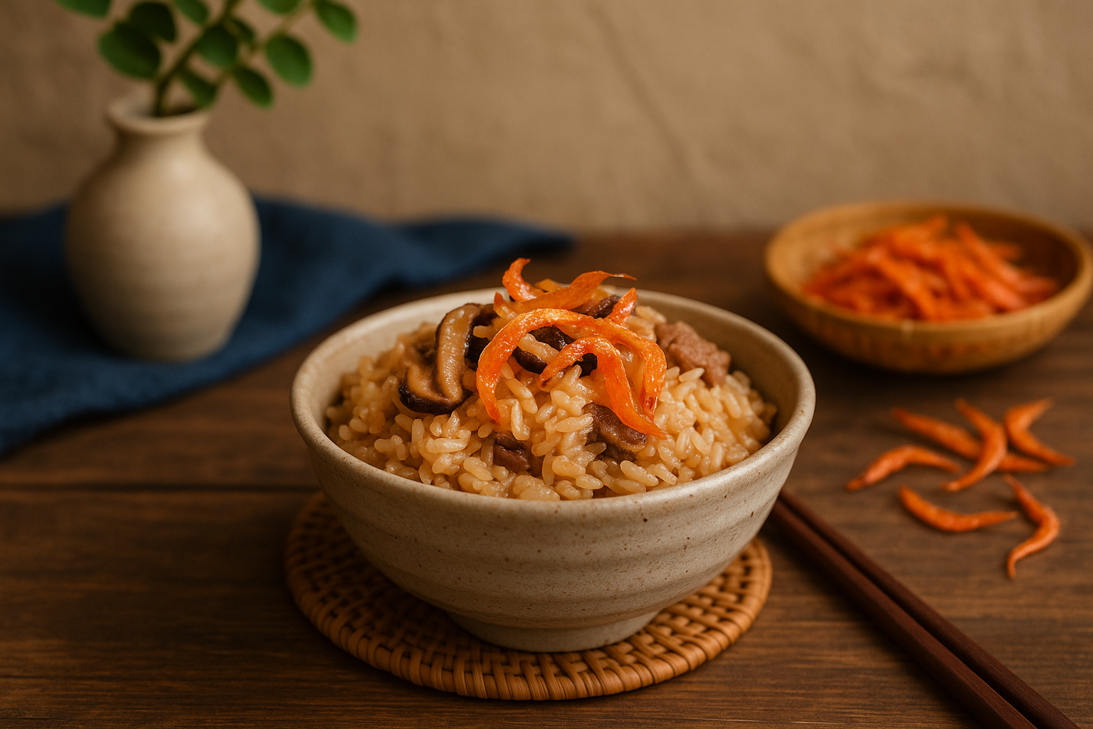 Strictly selected local ingredients, Sakura Shrimp, 100% non-staining. The crispy sakura prawns are mixed with steamed rice, full of aroma.