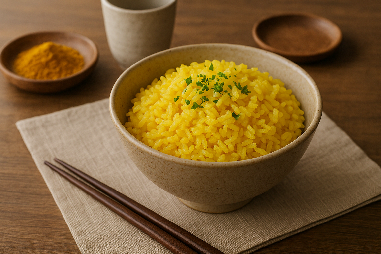 Infusing the gentle warmth of natural turmeric into perfectly cooked grains,