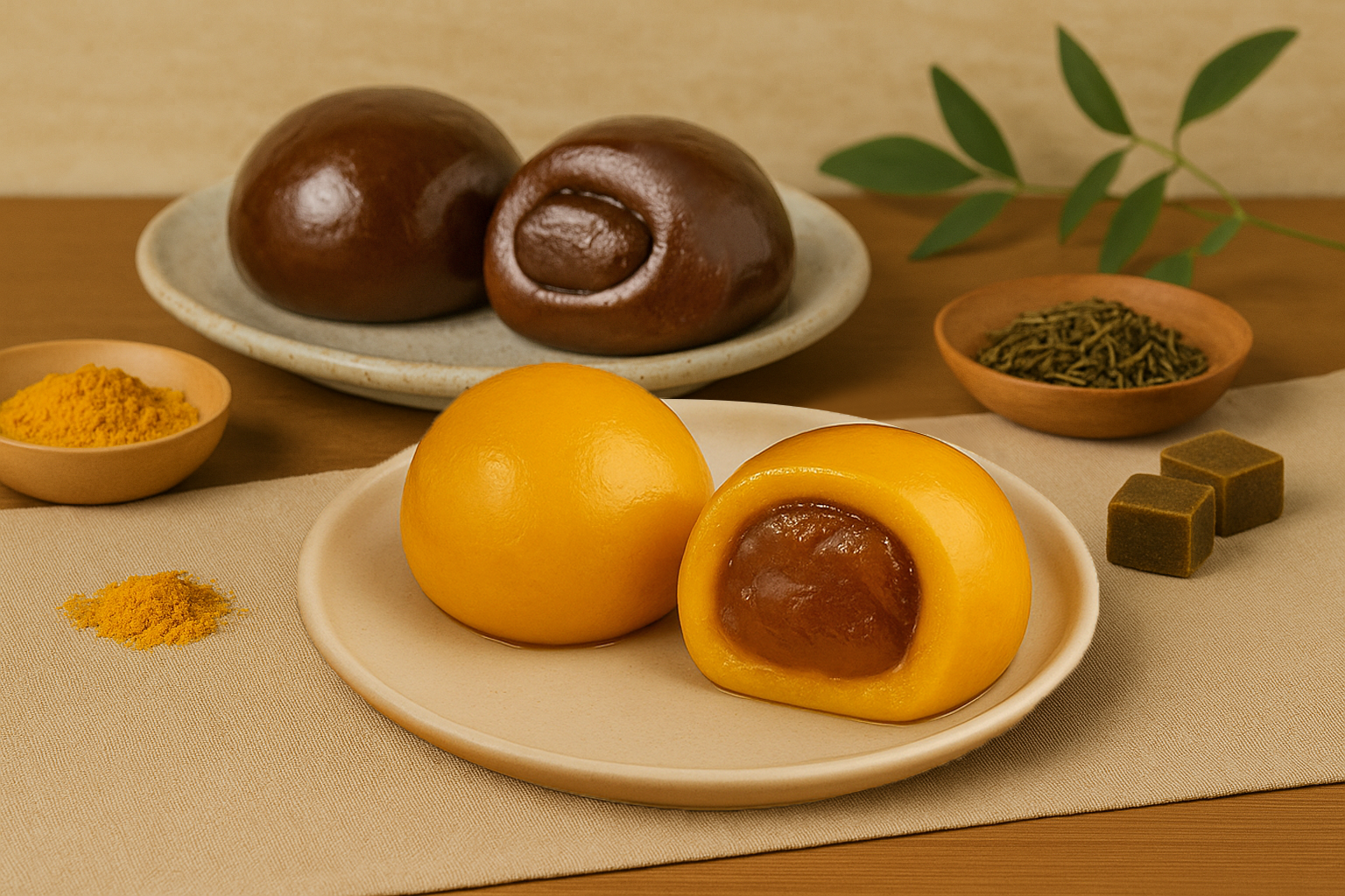 以薑黃粉與糯米粉製成粿皮,帶出金黃自然色澤與溫潤香氣,