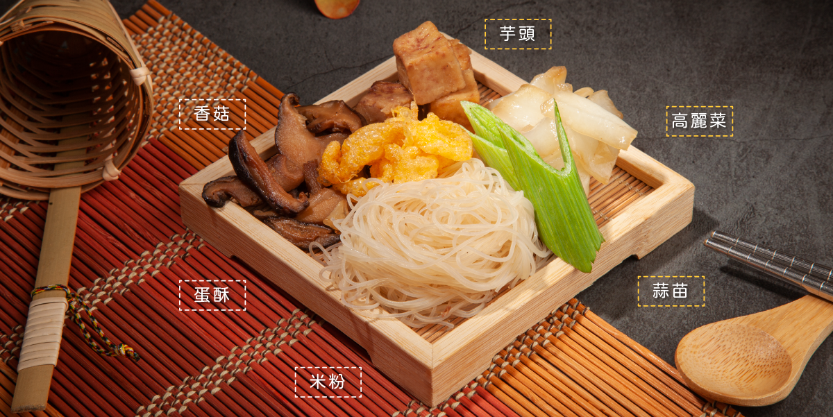 內容物:水、鯧魚、高麗菜、芋頭丁、細粉、紅蔥頭、雞蛋、芹菜、大蒜、香菇、蝦米、米酒